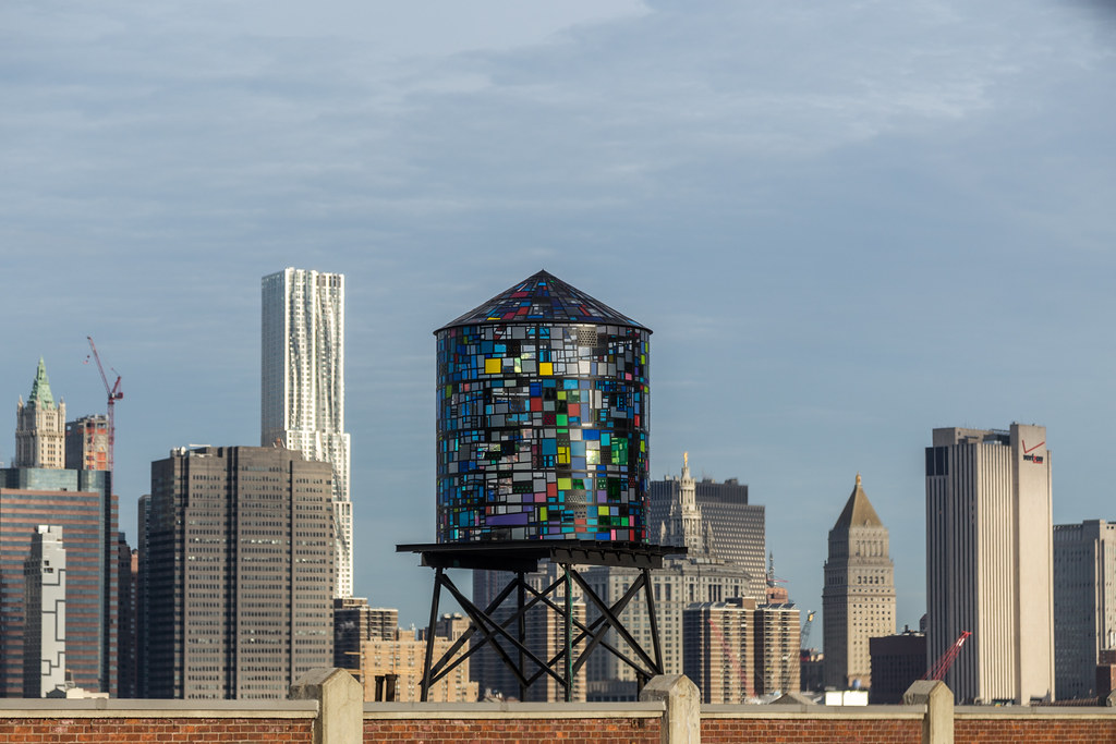 Ще одна скульптура Тома Фруна - кольоровий водний бак з видом на Манхеттен