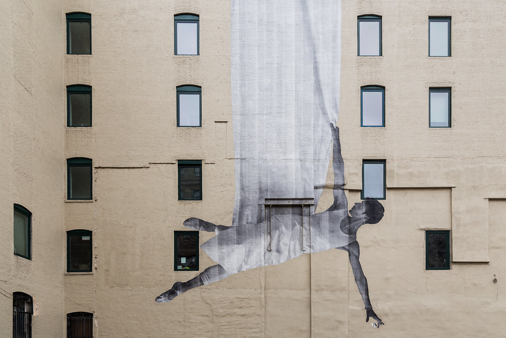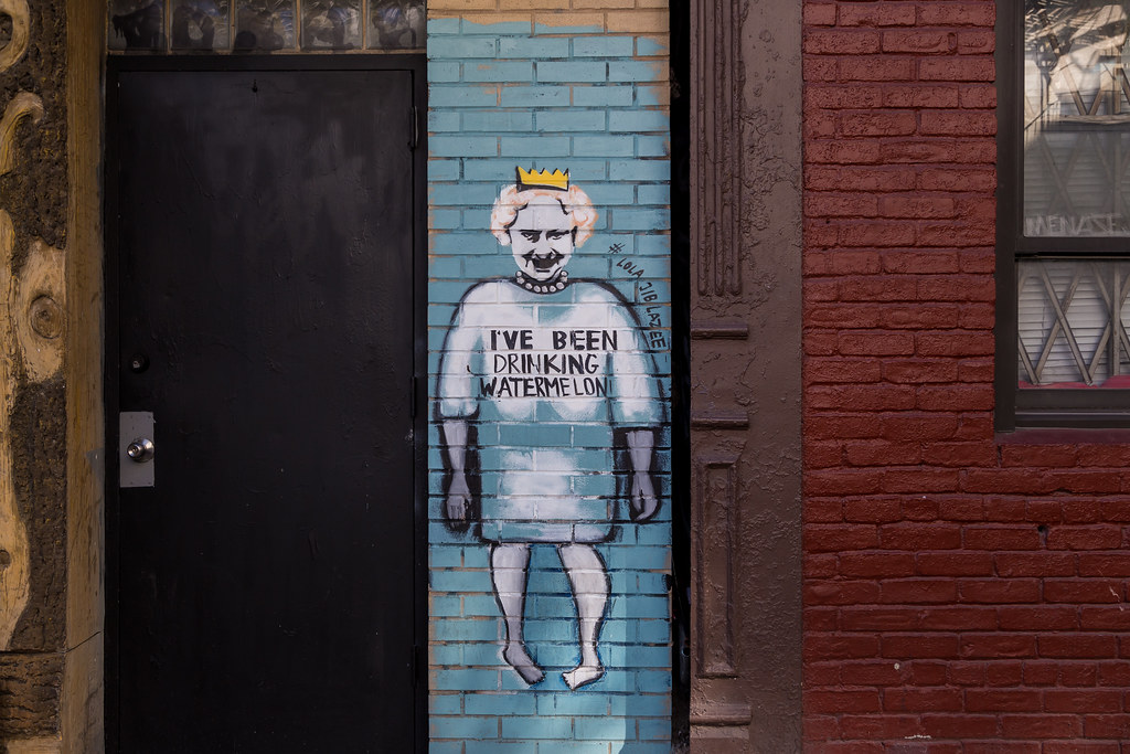 А це графіті було намальовано у внутрішньому дворику притулку для бездомних. І, оскільки це приватна територія, мені не дозволили підійти ближче