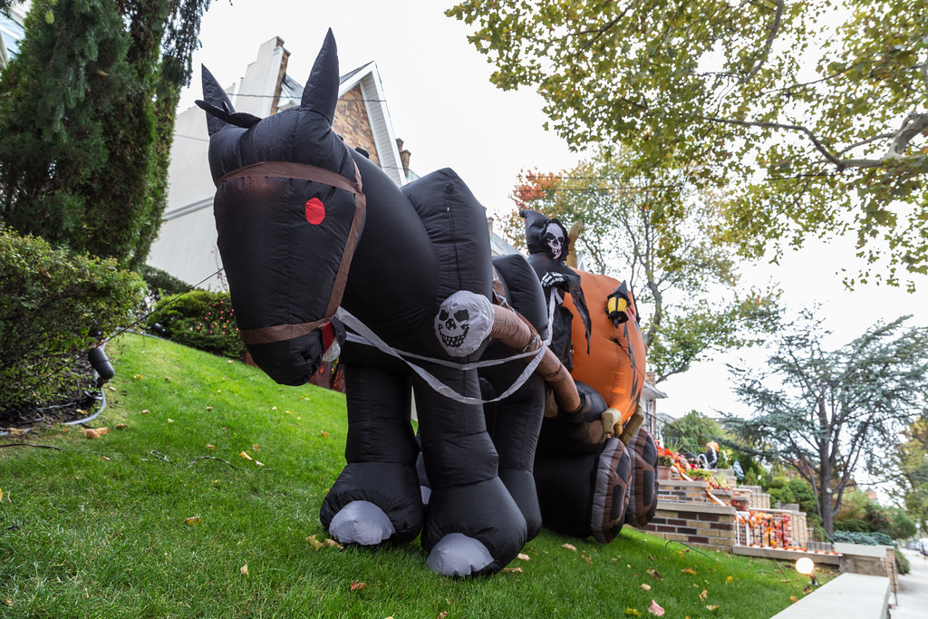 В Брукліні, завдяки більшим ділянкам довкола будинків, власники можуть дозволити собі так прикрасити власну оселю на Хелловін