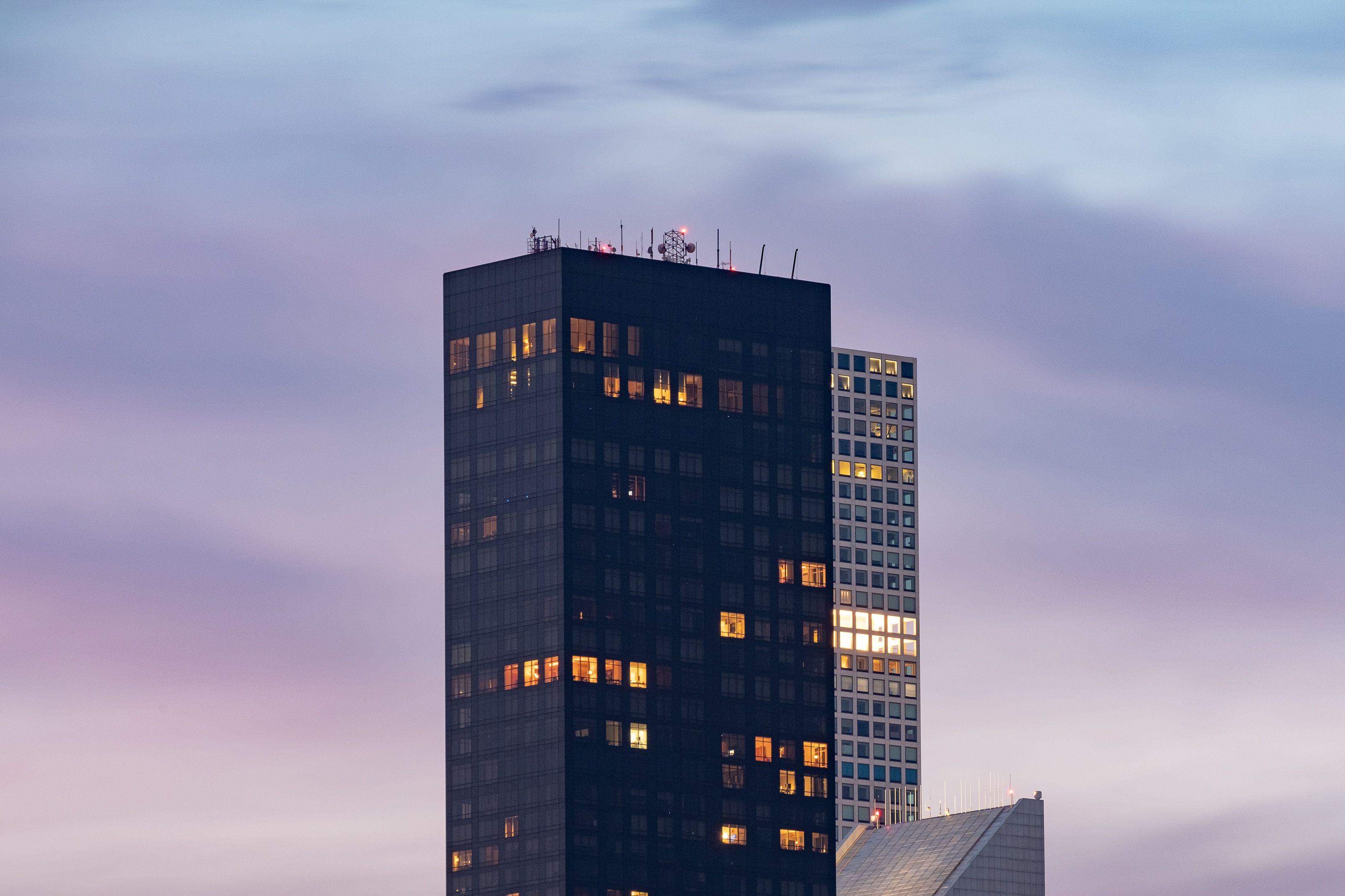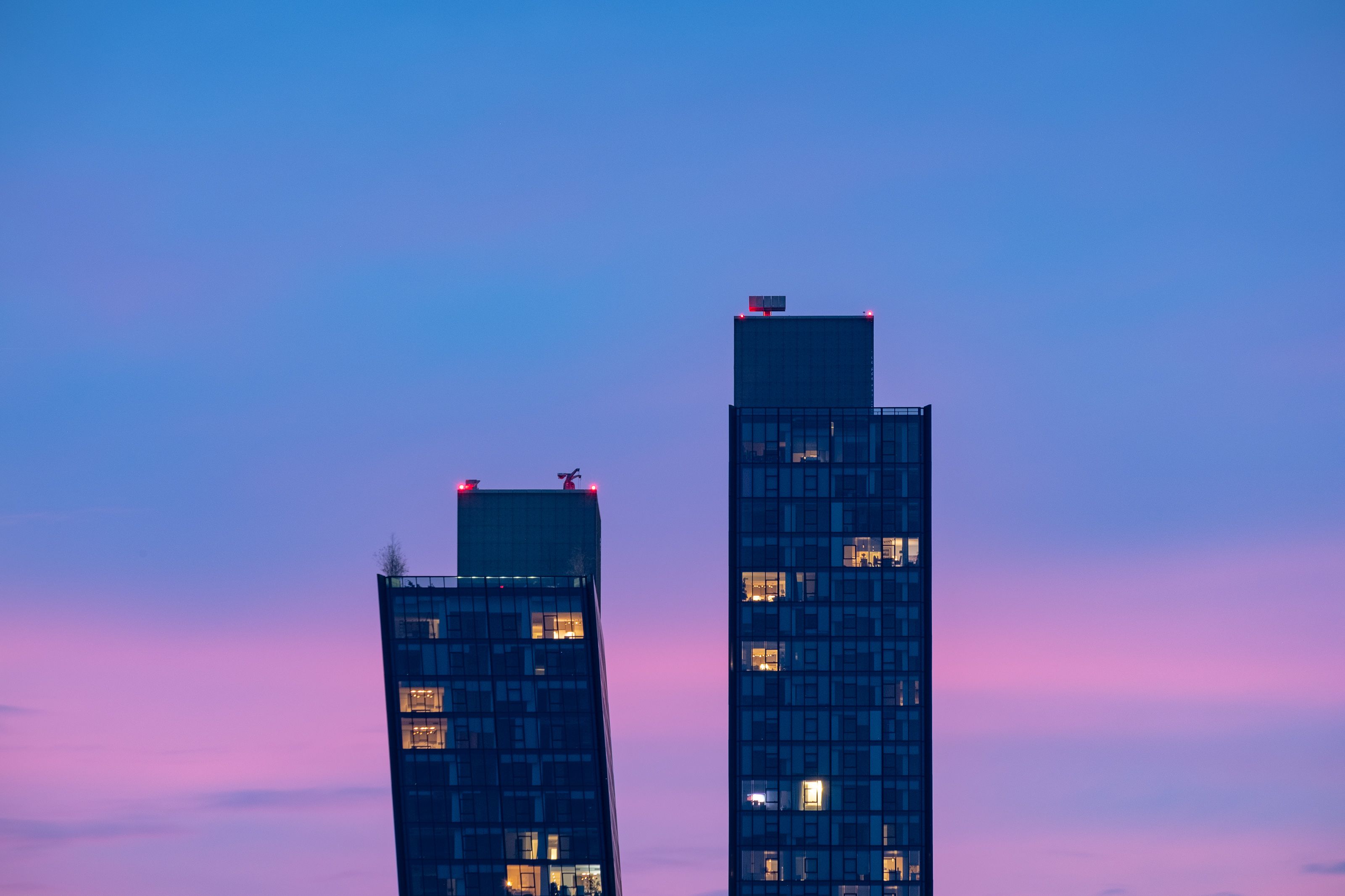 Сонце відблискує у хмарочосах