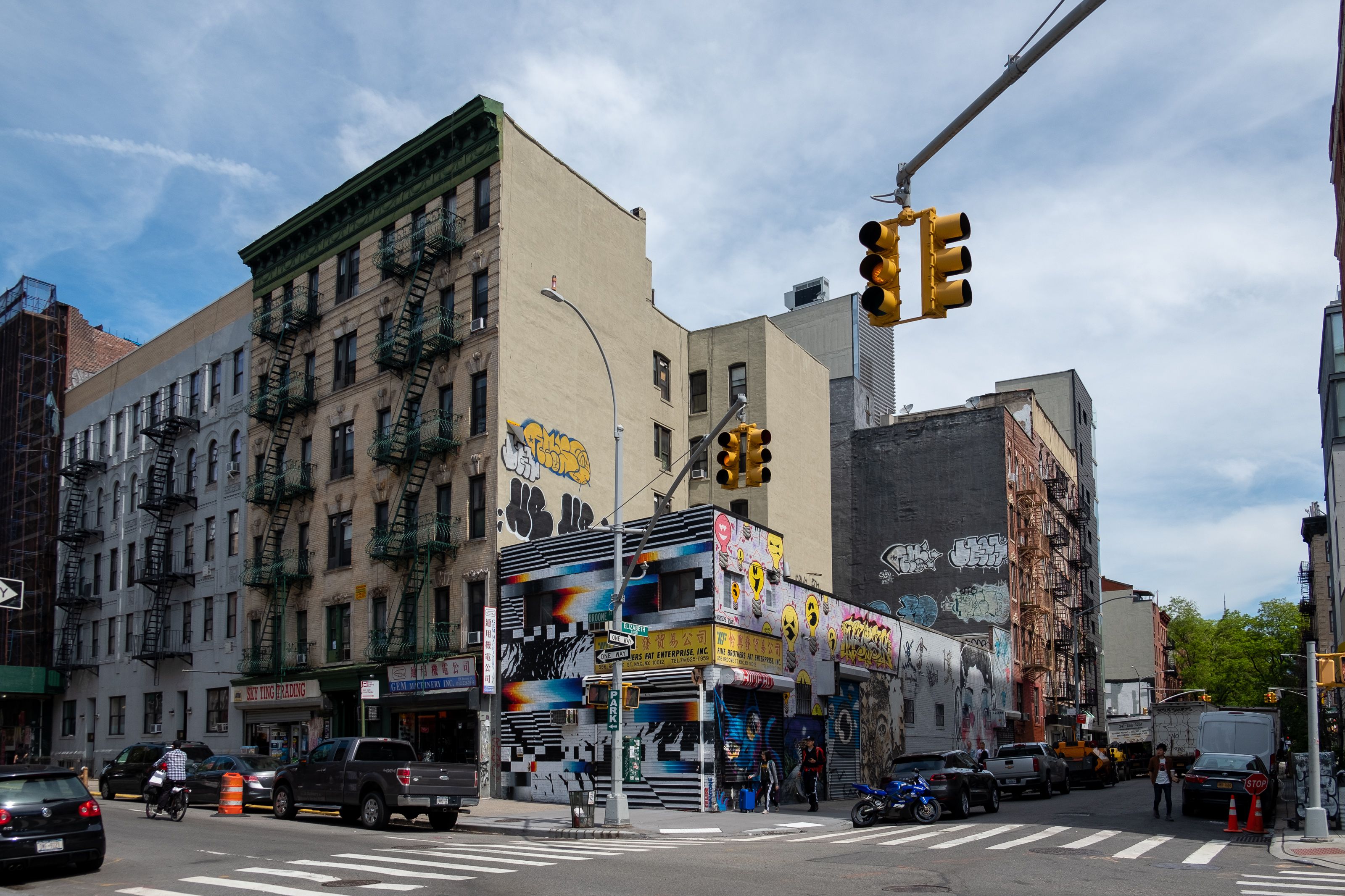 Низька будівля, вкрита графіті, належить компанії з назвою Five Brothers Fat Enterprise