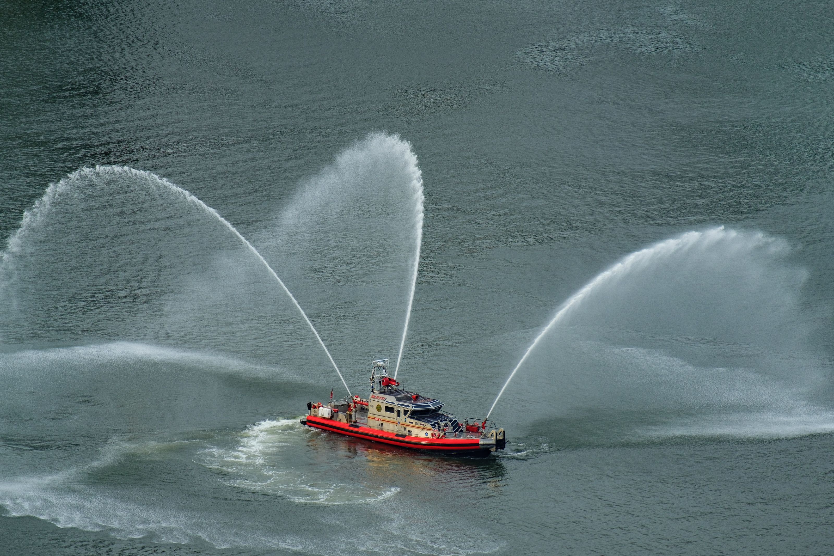 Таке враження, що пожежники проводили навчання, бо катер кружляв на одному місці з увімкненими брандспойтами